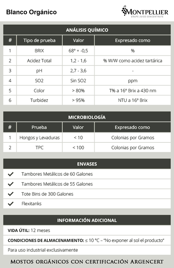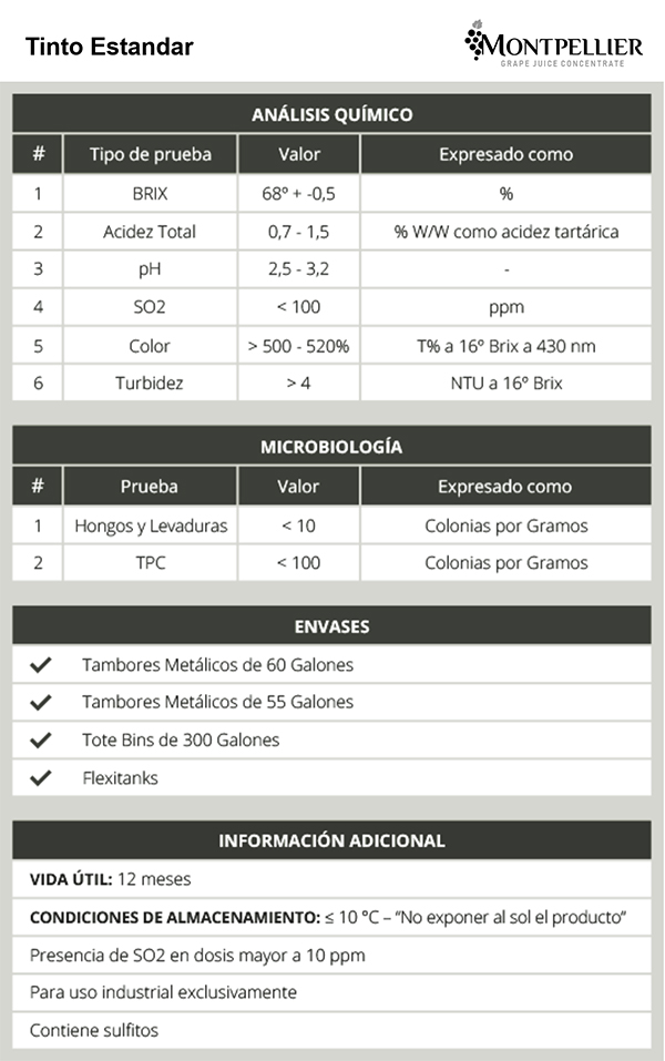 A la fecha la empresa se encuentra posicionada como uno de los referentes más importate en la exportación de mostos concentrados de uvas. Alcanzando volúmenes significativos.